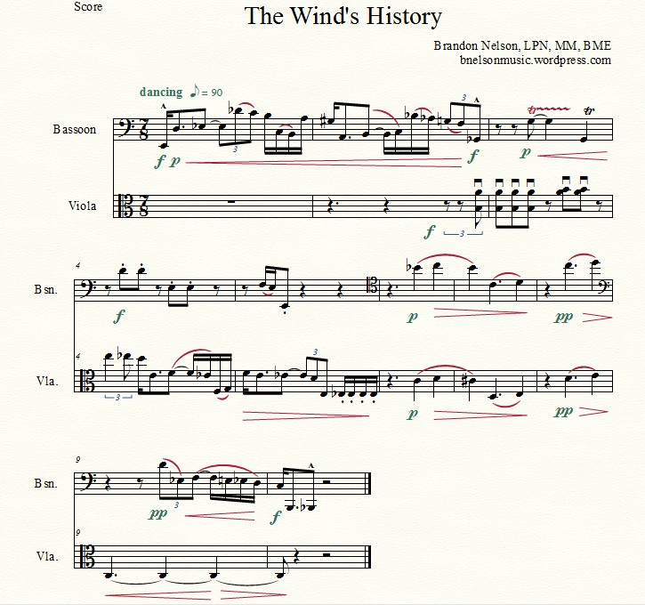 For this project (a short poem), I decide I want to explore the seventh. I will score it for bassoon and viola. I will use the major and minor 7th and I will allow myself use of the inversion, the major/minor 2nd. Use of any other intervals, I feel, would muddy the point of restricting intervals (though I could see using it merely as a jumping off point, should the muse strike, in larger projects). I could also decide that the 7th will dictate other parameters (phrasing in 7s, rhythmic units tied in some way to 7, etc.) but I choose to be freer in that regard.