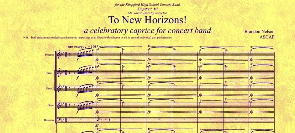 The composition, “To New Horizons!”, will be premiered at the Kingsford High School Auditorium on April 27th at 7pm. Composer Nelson will be in attendance and will give brief remarks prior to the performance.