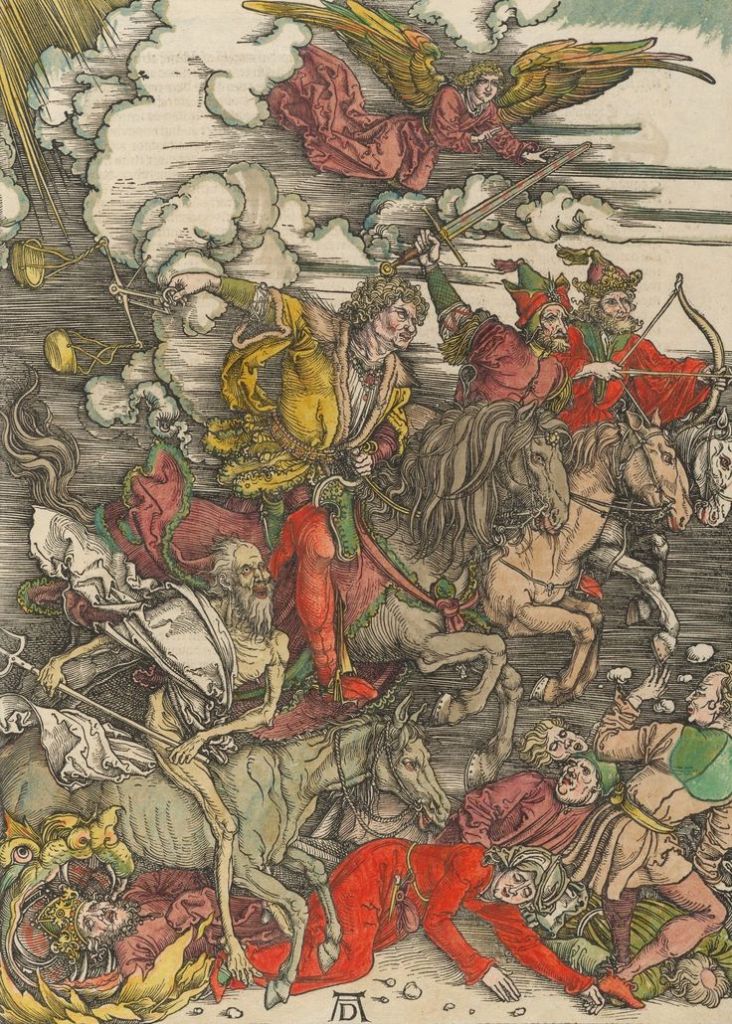 The Four Horsemen symbolize the evils to come before the end of the world. It is said that a quarter of the