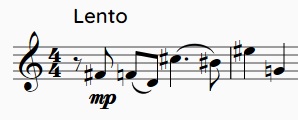 Here’s one method based on choosing a set of three intervals. Let’s say you wanted to compose a piece that was based around the augmented fourth, the perfect fifth, and the minor second. We choose pitches that fit this description and array them like so: