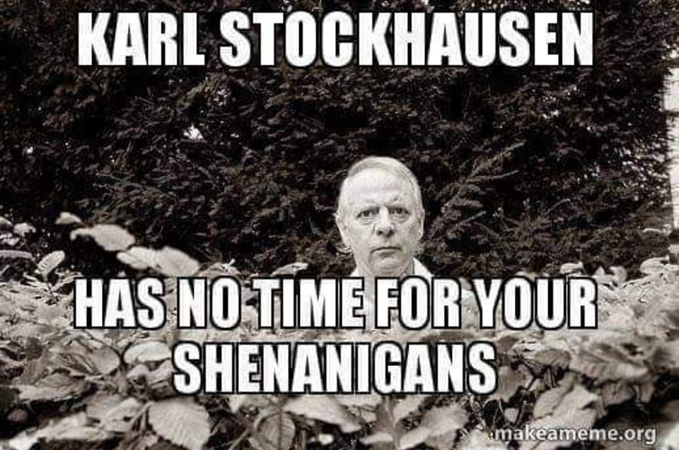 Well, maybe not quite Stockhausen-y things here, but definitely not the strict serialistic procedures of Schoenberg et al...