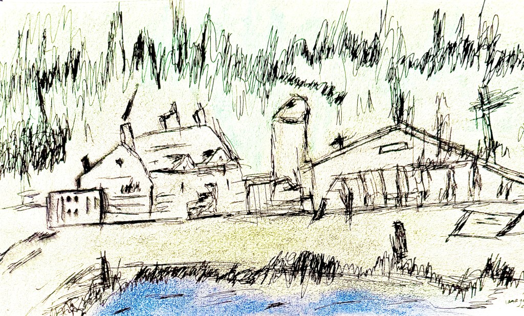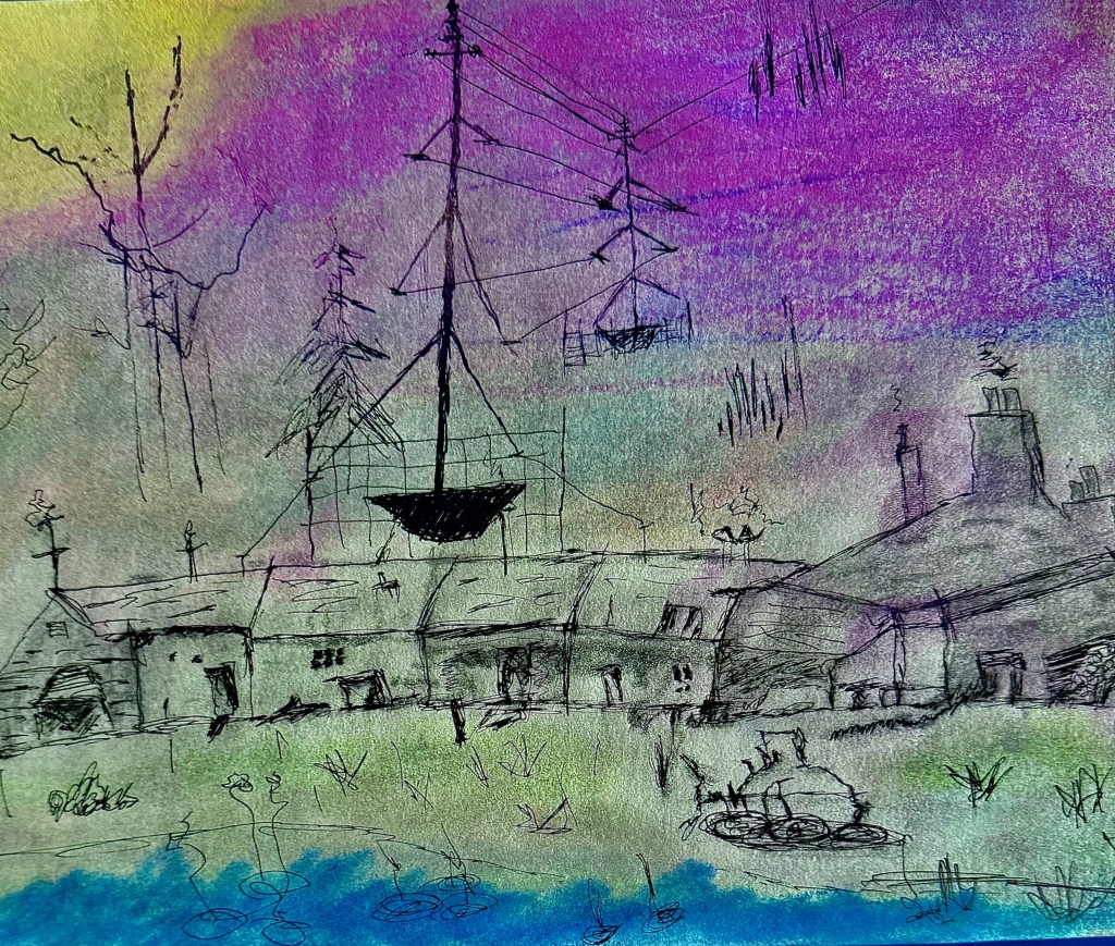 An imagined landscape, though one that is not at all dissimilar to many I see cropping up around me. I’m no luddite, but there is a certain undeniable feeling that something has been “lost” when we continually build on and over our own necessity-restricted heritage.