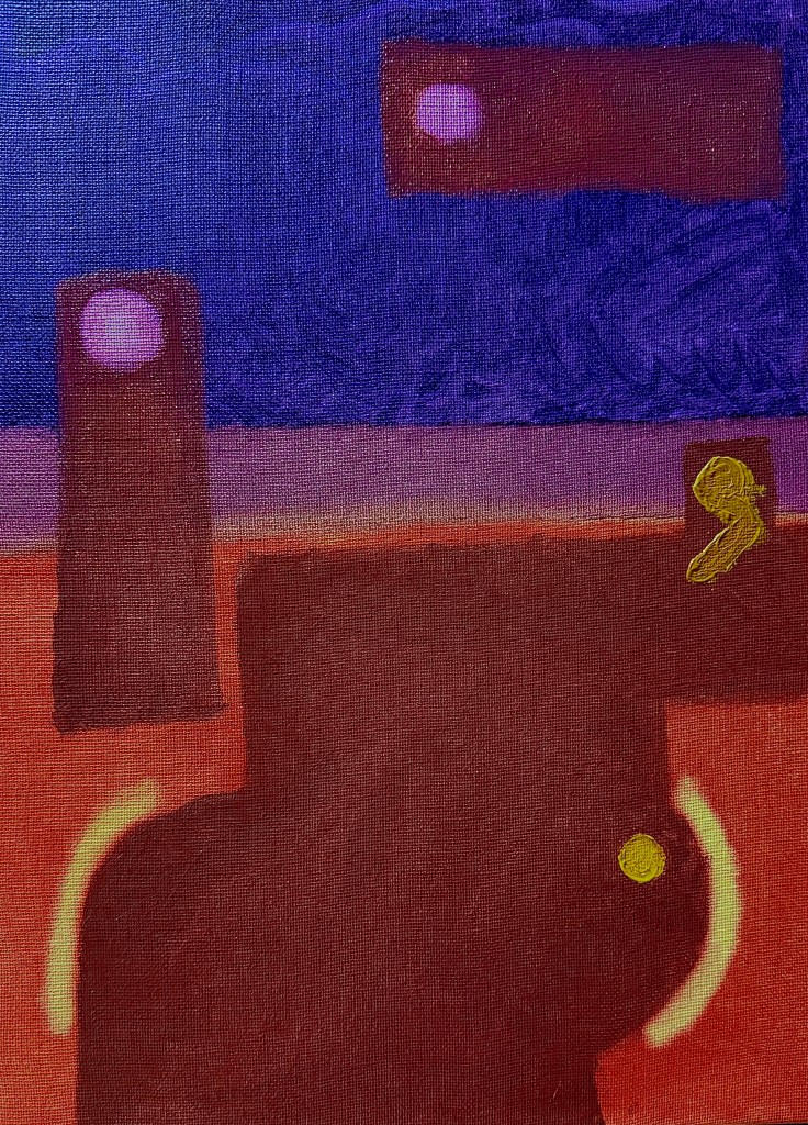 My first foray into the world of oil painting, I chose a subject close to my heart and soul. I feel like The Divine inherently calls for abstraction of some kind. (Obviously I have a few centuries of forebears who think otherwise…) So this is how I chose to depict the moment when Mary gave her assent to St. Gabriel and the Holy Spirit to make God a man. You can see I still largely favor highly geometric forms even when making abstractions of scenes (we think) we know well. I will let you dwell on what I have shown and how I have shown it. The viewer does this naturally anyway.